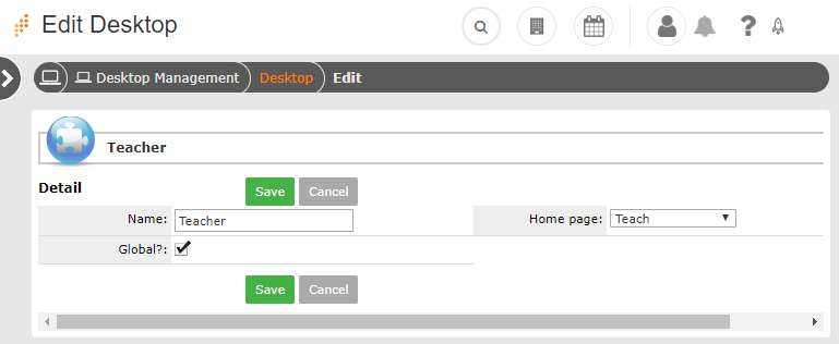 Note: Advanced users may be given access to manage their own home pages and desktops. If users have been granted this access, they can add, edit and create globally available and / or personal home pages / desktops.