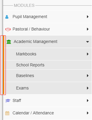 Each Arrow pointing right. indicates that you can see more options, e.g. if you click Markbooks, Baselines or Exams.